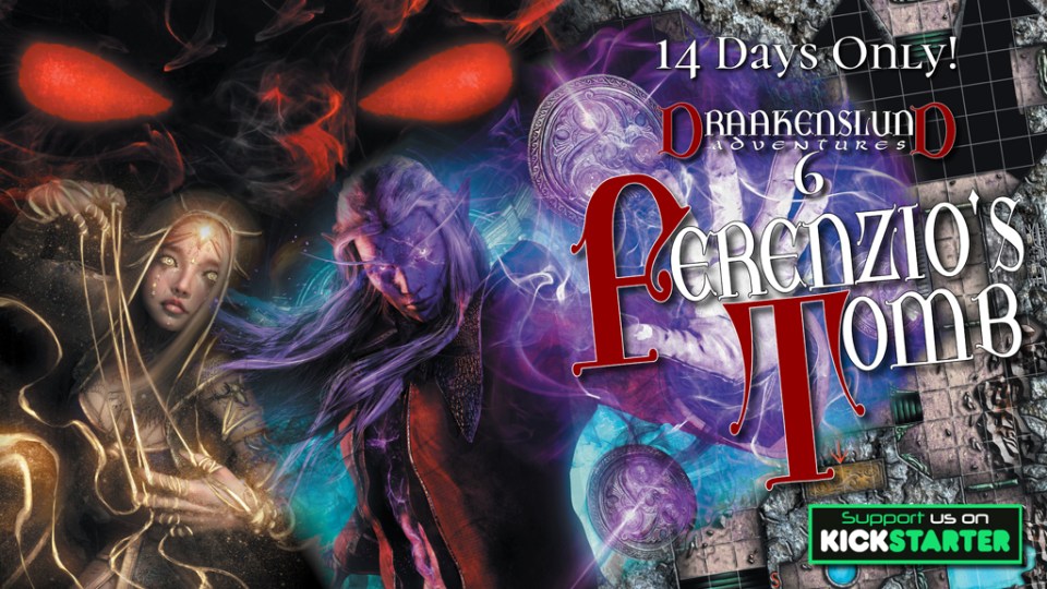 Ferenzio was an infamous tyrant who thought he could live forever. When he reached 200 years of age he disappeared into his mountain complex, never to be seen again. Now, three centuries later, the complex has been found. The complex … Continue reading FERENZIO’S TOMB – PDF Oneshot for DRAGONBANE, DnD 5E & OSR – Just Launched & FUNDED on Kickstarter! 1st Stretch Goal UNLOCKED!