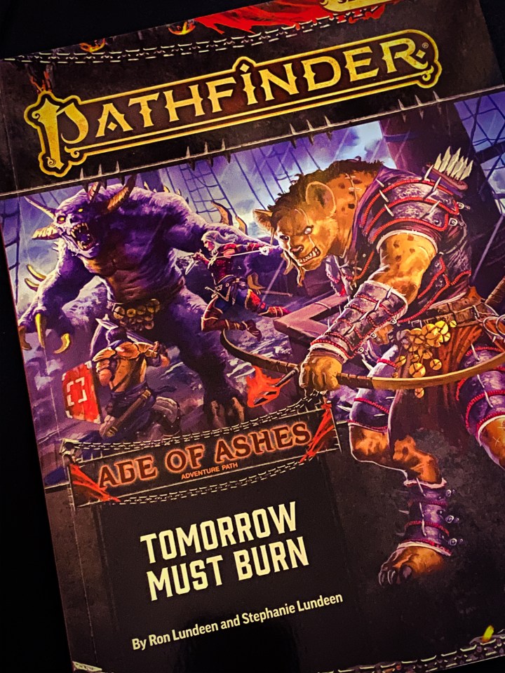 Tomorrow Must Burn is the third part of the epic Pathfinder 2e adventure path Age of Ashes, containing three adventures for characters of 9th-11th level. The PCs face off against the Scarlet Triad, the slavers behind the Cinderclaw Cult and the adventure path’s overarching conspiracy (which I won’t spoil).