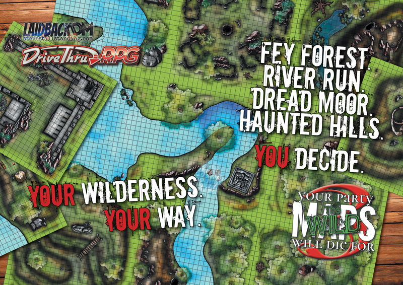 MAPS YOUR PARTY WILL DIE FOR 3: The Wild is the direct sequel to MAPS YOUR PARTY WILL DIE FOR 2: Mega Dungeon! You can get the book and digital maps package now at DrivethruRPG at https://www.drivethrurpg.com/browse/pub/13989/