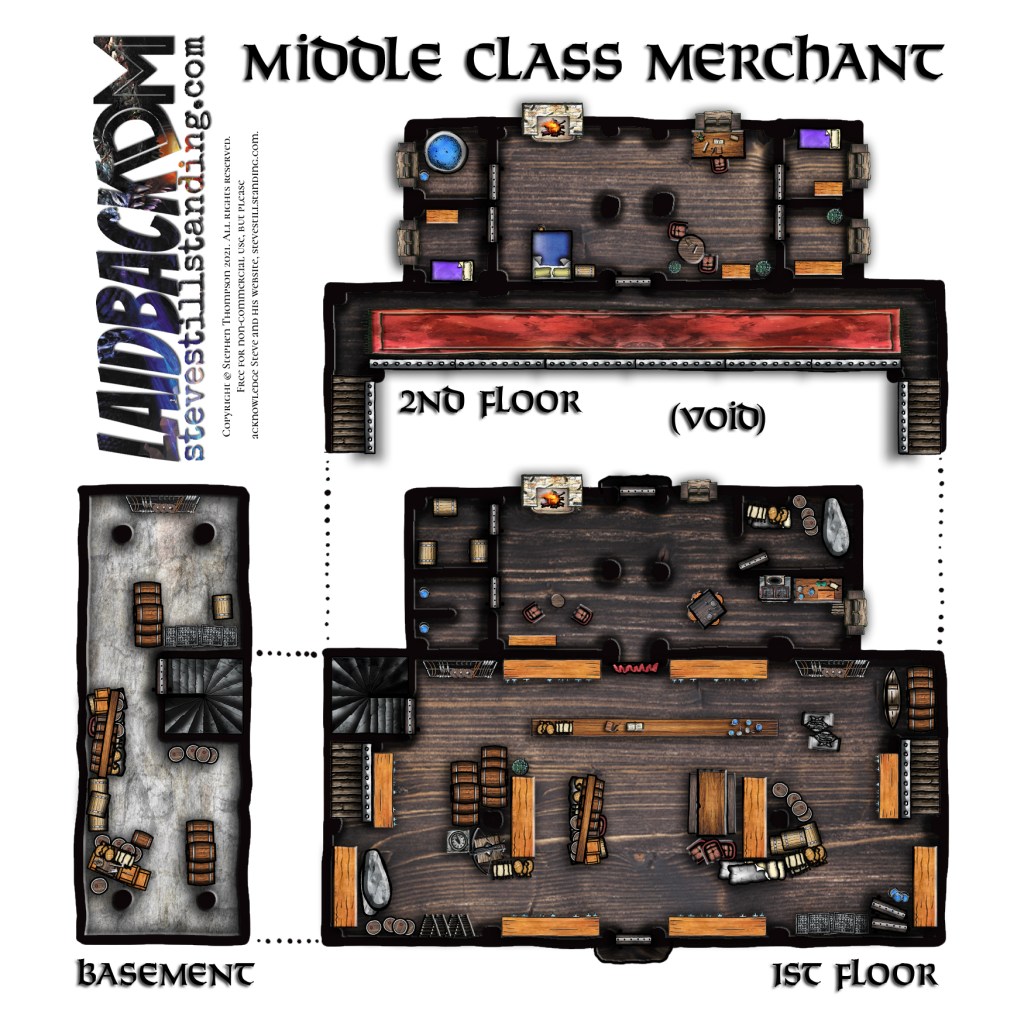 Every party has a rogue, and pretty well every rogue wants to do some shoplifting in the dead of night, don’t they? Never be unprepared again. Here’s a middle class merchant/trader with lots of goods (and no doubt lots of protection…). Enjoy!