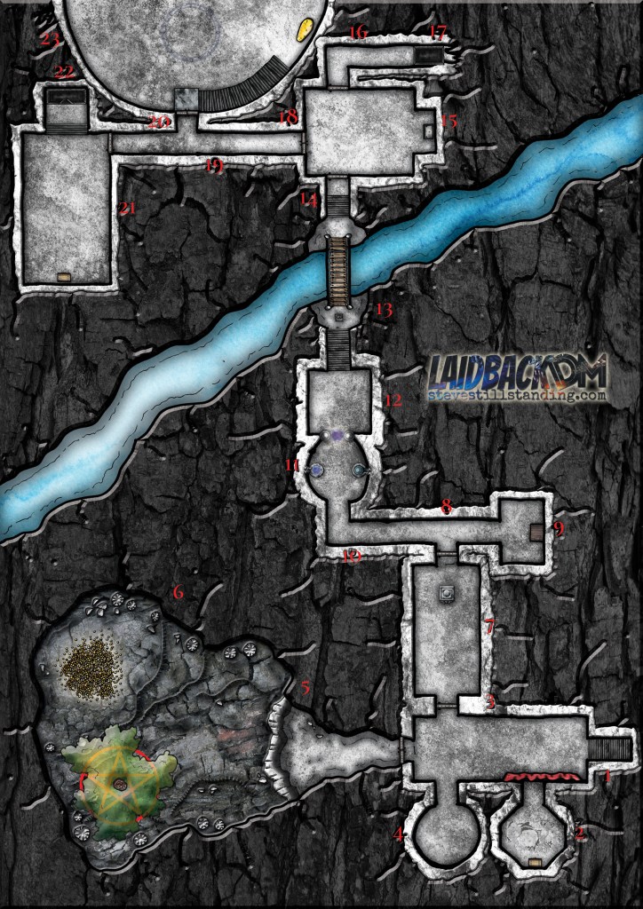 I play all my games on Roll20 at the moment, and for one of the adventures I decided to make a bigger map (because the tiny B&W one just wasn’t doing it for me lol). The map below is a slightly revamped version of The Tomb of Vallandar from The King Under The Forest in Sleeping Gods (I did it pretty quickly so please excuse the mistakes).