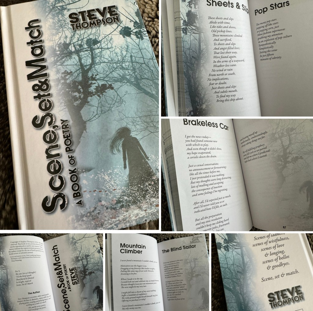 Scene, Set & Match is a hardcover book of poetry with over 70 poems of love, relationships, depression & the life in between. Scenes of sadness, scenes of wistfulness, scenes of love & longing, scenes of hellos & goodbyes. Scene, set & match.