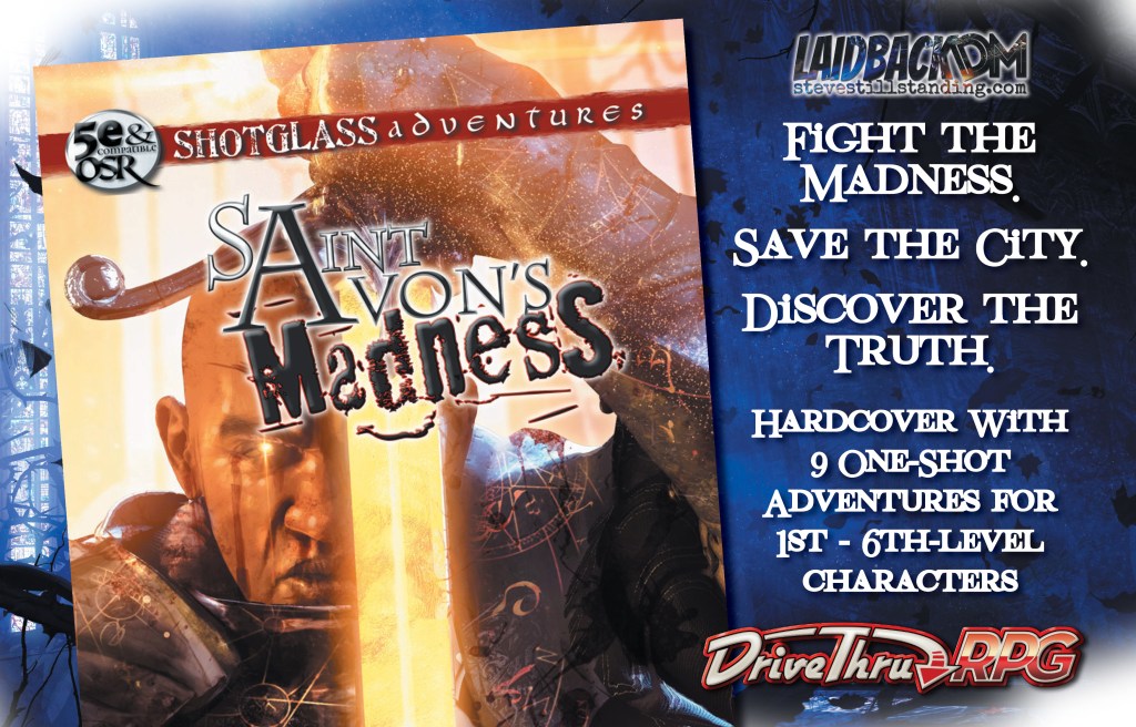 Over time I’ve been updating the trade dressing on my newer products (you may have noticed the red sidebars on many of my PDFs and red trade dress across the top of my hardcovers, my 5e & OSR compatibility logo, stuff like that).