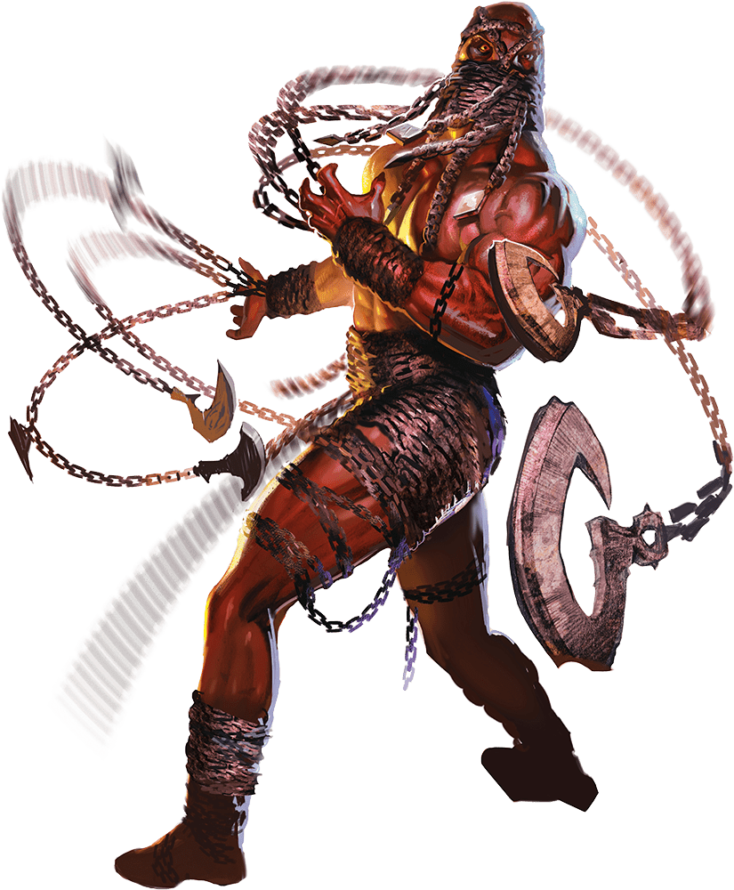 Suddenly, a chain devil erupted from an alcove nearby, lashing its chains at Felix. Luckily, it missed, and spotting Ser Keraston up the corridor, rushed to confront the aasimar. Fa’aoa burst into the crypt as High Chief Nohea, his upstart brother who had wrested the crown from him and sent him into exile, rushed forward. “I would have your blood, my brother,” cried Nohea. Another chain devil lashed its chains at the barbarian, restraining him so that the high chieftain could attack him with ease. Keraston took on Aulani Etana, who turned out to be quite the assassin, sniping the aasimar with a poisoned crossbow bolt to the chest. Fr’an’kk and Keraston worked in unison to take out Aulani, while Granak and Felix assisted Fa’aoa to render Nohea unconscious, but it was a hard-won battle. Nohea’s last words summoned his patron, arch devil Parzelon, who started to appear in a flash of lightning. The party fled, Fa’aoa carrying his brother.