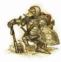 The party rested overnight in the “griffon camp”. Volcarian the wolfkin mage cooked up a storm of griffon flesh, providing rations for several more days. Makander the mallard knight wandered off at the end of the Griffon battle, saying “I have a small business to attend to…”. Soon, the only remaining sign of his passing was a few webbed footprints in the mud leading away into the mist. The party was very upset that their banker (he who organized the party finances) had taken their money with him, as well as the two pieces of emperor’s statue they had recovered. Luckily, the next morning they found the statuette pieces and a bag of funds outside the ramshackle building they had rested in.