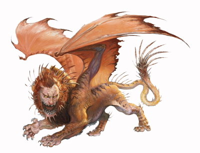 Kris krept into the next chamber, immediately recognizing the huge manticore that padded around the room. Unfortunately, it saw her and followed her back, bursting through the doorway and sending people packing in all directions – Kris and Aodhan fled into a treasure room to the south. Both Volcarian and Aodhan were somewhat drained after the last battle, so it was up to Bastonn the wolfkin hunter and newcomer Theoline to take the great beast down.