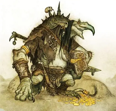 The next morning everyone ate rations for breakfast. It was only then that Kris realized that Windblown the donkey and Taliah the cleric had been left upstairs! She rushed up the spiral staircase to find that the mule and the cleric were gone, an ominous blood smear leading to the edge of the forest. Theoline was able to track the blood trail until they all came to a large cave in the side of a hill. They could hear crunching, tearing and munching sounds within. Kris called out and Bog the troll emerged with a black donkey haunch and a human thighbone in his mouth. Kris inquired about the lost animal and party member, but the news was not positive.