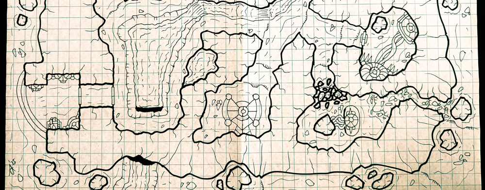Hi all – here’s another of my impromptu hand drawn dungeon maps. This one is mountain lair filled with technological stuff. Enjoy! 🙂