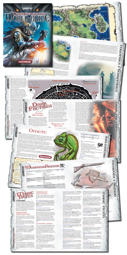 Draakenslund World Guide is a 78-page hardcover/softcover & PDF book, featuring a fantastic new world for Dragonbane, 5e & OSR! A zip file of VTT maps and tokens is included!