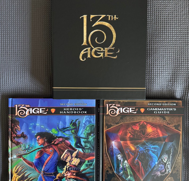 I’ve loved 13th Age ever since I first bought the first edition rulebook about seven years ago. It’s a d20/DnD-style game with far more storytelling options and some very neat rules. Players get to be literal fantasy superheroes in a sparse fantasy world where the players’ decisions control outcomes and the storyline as much as the GM’s.