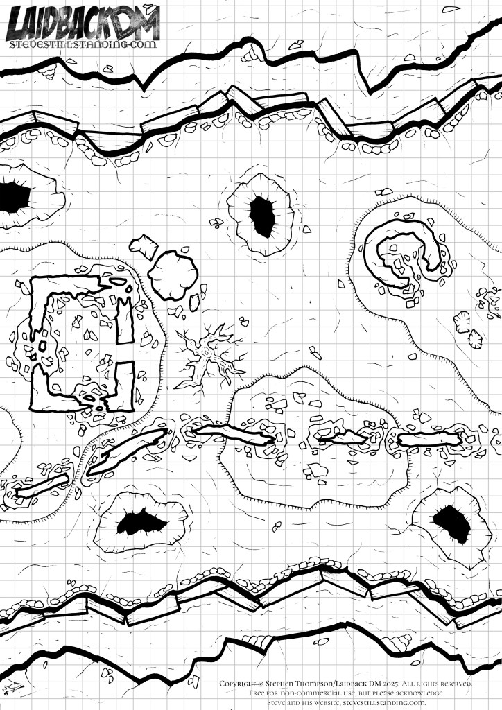 This old Battleground map comes with a grid, perfect for face-to-face games or for Roll20, Fantasy Grounds, or Foundry!