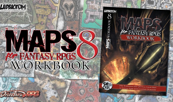 MAPS For FANTASY RPGs Workbook 8 is a 128-page softcover book/PDF with 20 hand drawn, full color, grid and grid-less, system-neutral maps from the MAPS FOR FANTASY RPGs 8 Digital Maps Package and include spaces provided to name maps, stock dungeons and/or add notes as you run players through your adventures! … Continue reading ‘Maps for Fantasy RPGs Workbook 8’ is available on DrivethruRPG!
