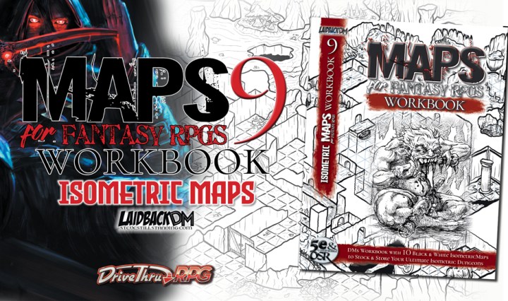‘MAPS For FANTASY RPGs Workbook 9: Isometric’ is a 68-page softcover book/PDF with 10 hand drawn, old school, black and white ISOMETRIC maps which includes spaces provided to name your maps, stock your dungeons and/or add notes as you run … Continue reading ‘MAPS For FANTASY RPGs Workbook 9: Isometric’ is available on DrivethruRPG!