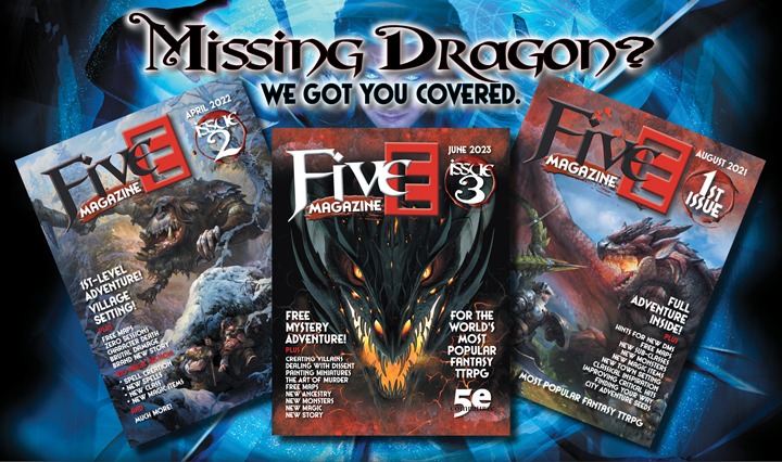 FiveE Magazine Issue 3 is FREE in PDF and PRINT on Drivethrurpg!