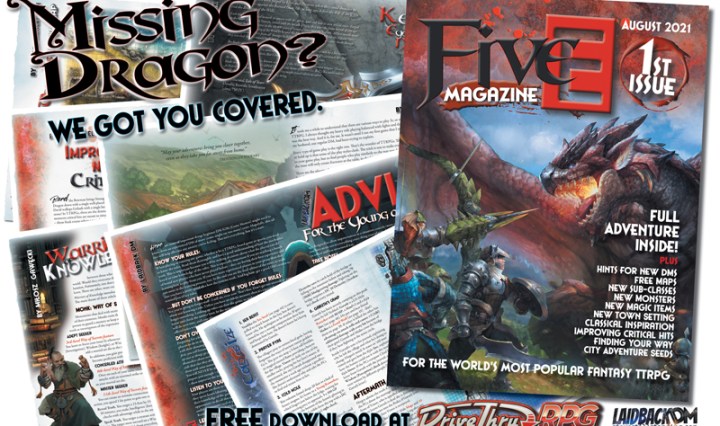 FiveE Magazine Issue 3 is FREE in PDF and PRINT on Drivethrurpg!